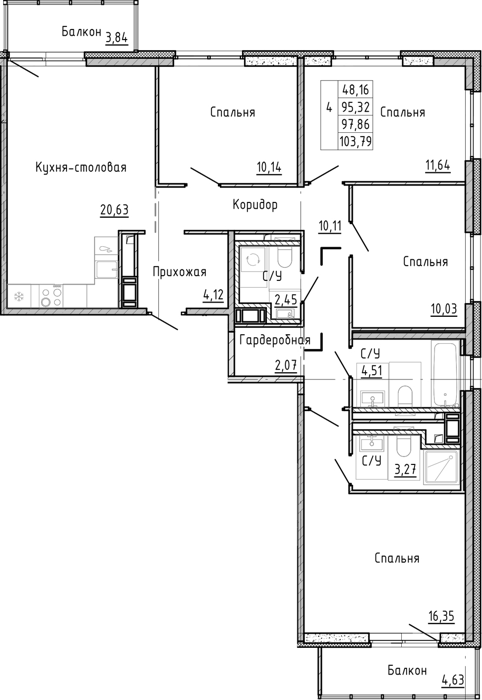В наличии квартиры, как классического типа, так и европланировки. В них предусмотрены нестандартные широкие балконы с увеличенной площадью и панорамным остеклением.